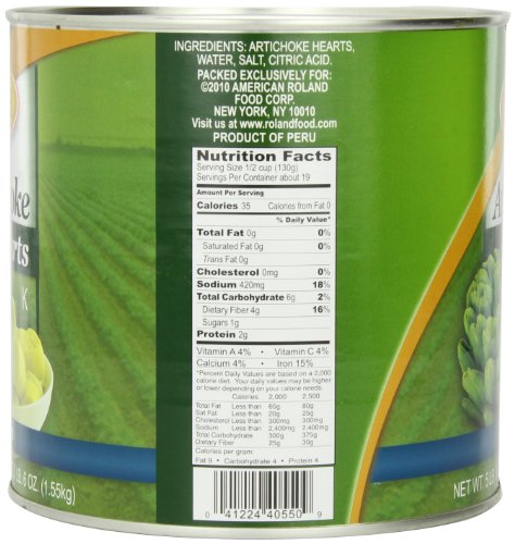 Roland Foods Artichoke Hearts, 60-70 Count, 88 Ounce
