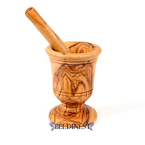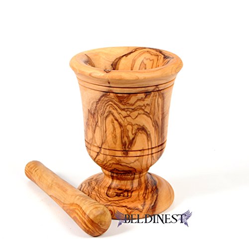 - Hand Carved Large Mortar and Pestle From a Solid Piece of Olive Wood with a Unique Grain