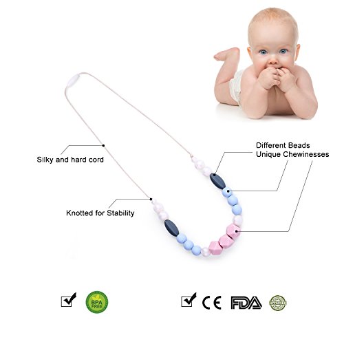 CONVENIENT AND NEVER FALL OFF-It is very convenient for you to just wear this necklace and let your baby chew it while you are carrying baby. At the same time, the necklace stays on your neck securely and it never fall off.