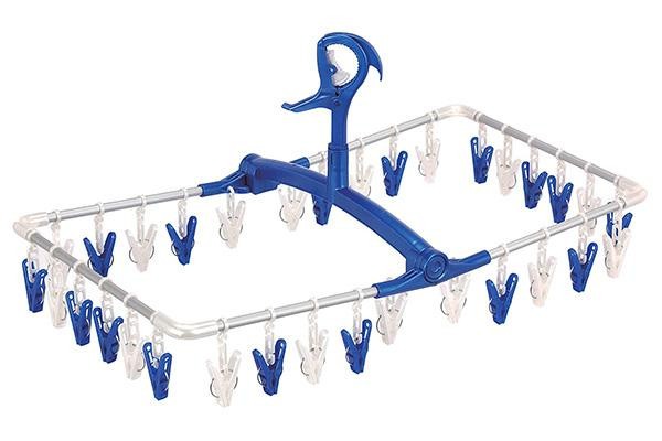 | 吊りチェーンのない上折れタイプで、サッと広げられて使いやすいシンプル構造。ピンチは洗濯物に跡が残りにくい細かな凸面構造です。傷んだら、お手持ちのピンチと取り替えることができます。 |