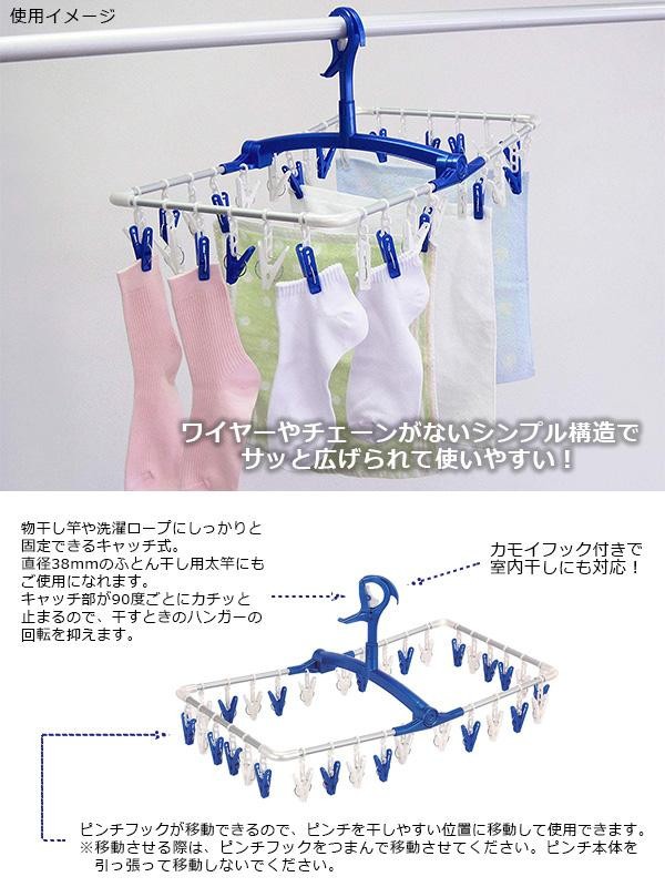吊りチェーンのない上折れタイプで、サッと広げられて使いやすいシンプル構造。ピンチは洗濯物に跡が残りにくい細かな凸面構造です。傷んだら、お手持ちのピンチと取り替えることができます。 |