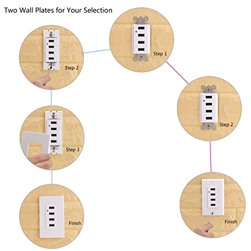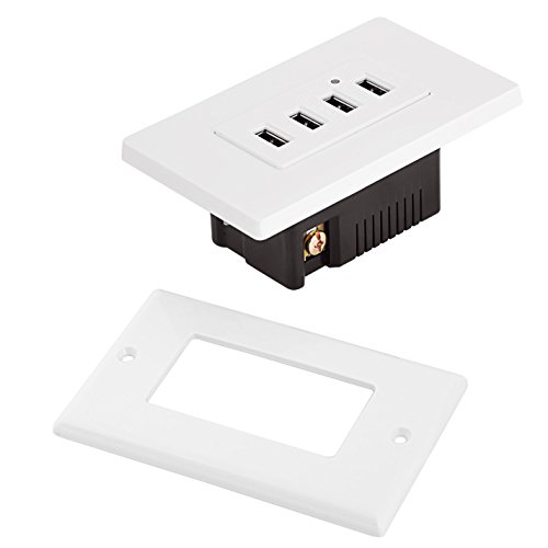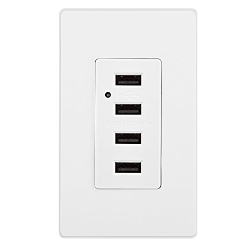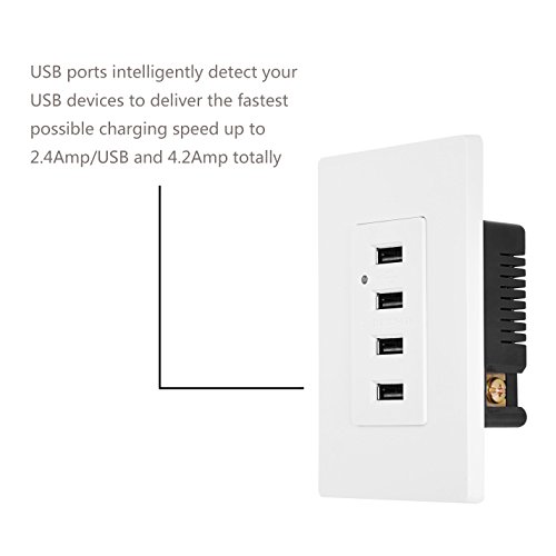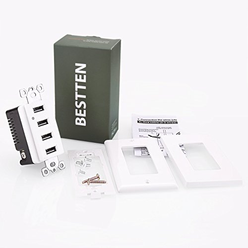BESTTEN High Speed 4.2A/21W USB Receptacle Outlet with 4 USB Charging Ports and LED Indicator Light, Two Wall Plates Included, UL Listed, White