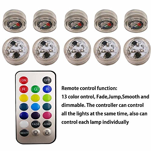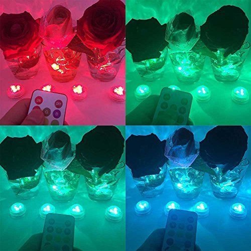 Waterproof Flameless Candles LED Tea Light with Remote Control Submersible Candle Lights Wedding Underwater Battery (Multi-colored-10 Pack)