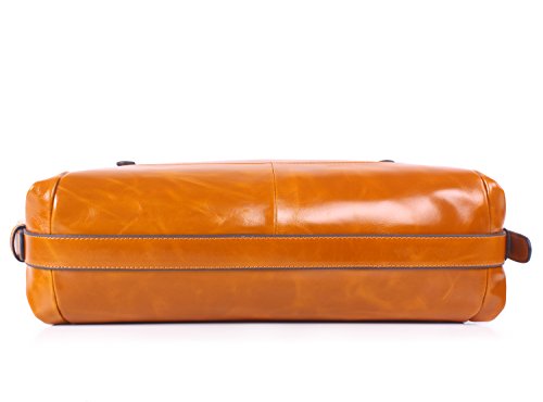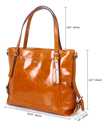-. Feature : Material:100%Genuine Leather (Top grain oil wax cowhide) . We're using High quality luxury soft leather and with luxury durable fabric lining , High quality Classic Light Gold metal hardware. / Closure Type: top zipper closure. Handles can be adjusted easily at both sides. Removable and adjustable shoulder strap length. shoulder strap length:48"-55"inches. You can have 3 carrying options (Single shoulder, Messenger or hand carry). / Internal: All the stuff can be well organized inside! 2 generous main pockets FIT 14" laptops/A4 magazine, a central zippered pocket for IPAD, 1 side zippered pockets for wallets and another 2 pockets for phone/cards/credentials. A zipper pocket on the back. / Dimension(L*W*H):16.53" x 5.90" x 12.20"inches/(42CM*15CM*31CM), Hand leheight:12.60"/32CM, Handle Drop:3.15 "/8CM , Weight: about 2.60 pounds/1.18KG. / The handbag appearance concise and atmosphere, classic style, Soft leather and handmade. 2 colors are very beautiful and stylish. Fit to travel, work, leisure, meetings. Simply designed, Gorgeous look, Never go out of style.