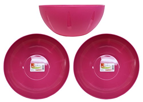 Set of 3 Click Home Design Large Pink 10" x 4.25" Serving and Mixing Bowls 135 Fluid Oz (3, Pink)