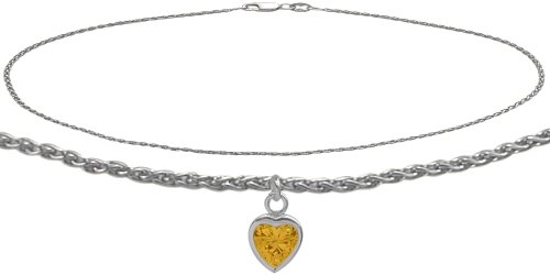 -. Title : 10K White Gold Wheat Anklet with Genuine Citrine Heart Charm