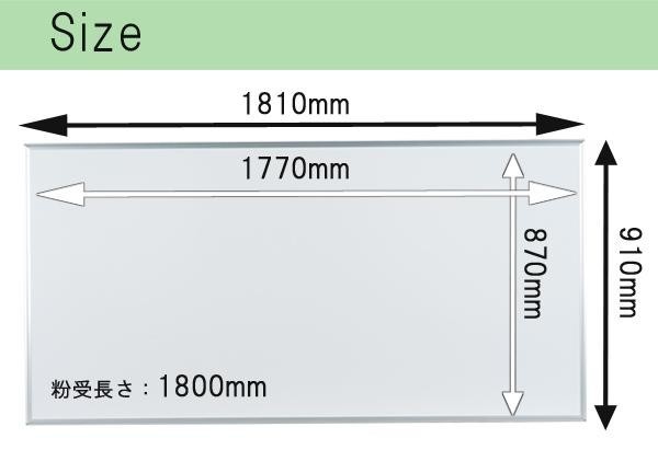 | サイズ | 板面寸法:W1810×H910mm、有効寸法:W1770×H870mm、粉受長さ:L1800mm 個装サイズ:188×96×4cm |