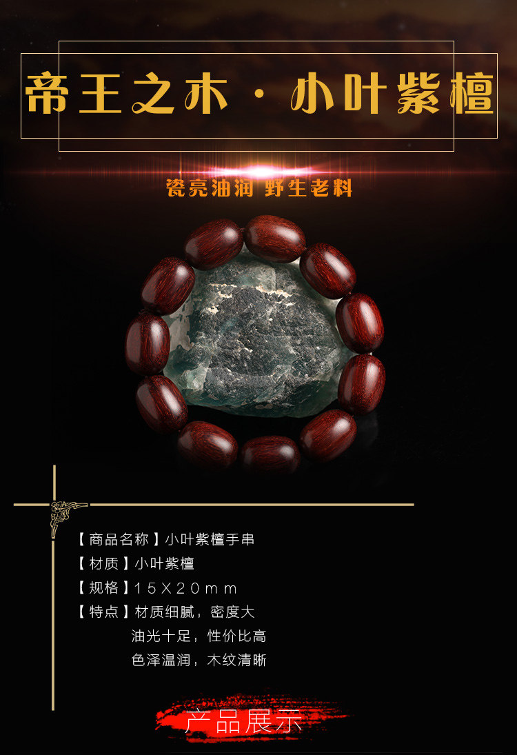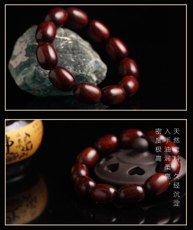 正宗印度小叶紫檀佛珠枣珠 椭圆高油性高密度顺纹木质手串男女款