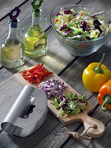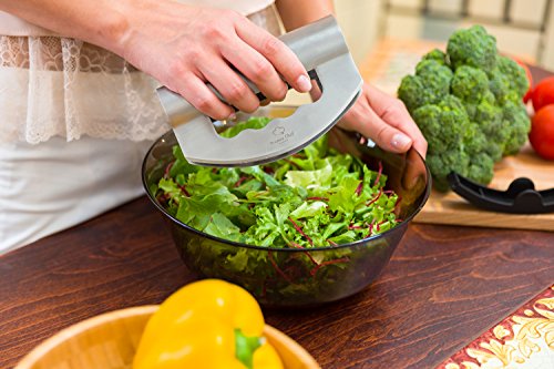 - KEEP THEM FRESH - The mezzaluna chopper helps you chop and mince herbs, onions, lettuce, peppers, nuts and more finely, quickly and keep them green and fresh longer