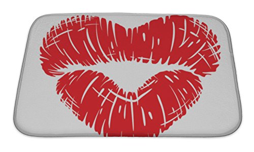 Gear New No Slip Microfiber Memory Foam Red Lips Print in Heart Shape Bath Rug Mat, 24" X 17"