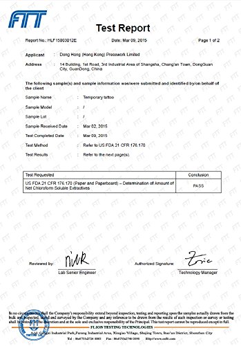 SAFE: DaLin Temporary Tattoos Meet Rigid Safety And NON-TOXIC Materials Standard, Passed FDA.