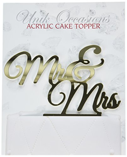 Unik Occasions "Mr. & Mrs." Elegant Acrylic Cake Topper, Gold Mirror
