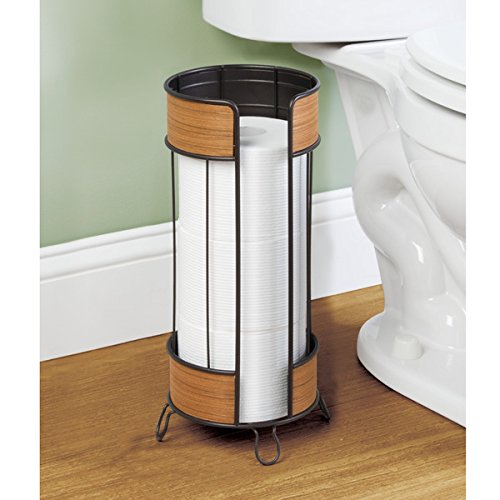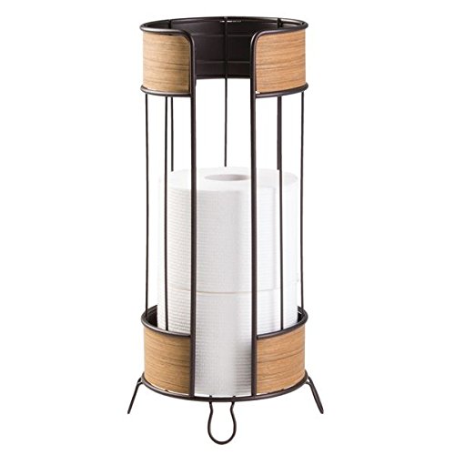 mDesign Free Standing Toilet Paper Roll Holder for Bathroom Storage - Bronze/Teak Finish