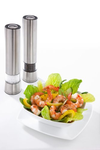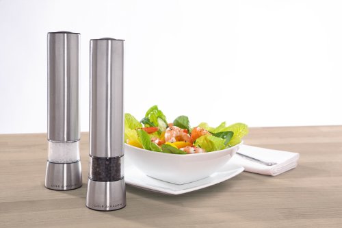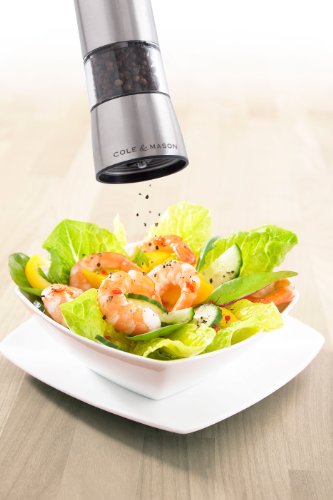 COLE & MASON Hampstead Electric Pepper Grinder with LED Light - Electronic Battery Operated Peppercorn Mill, Stainless Steel
