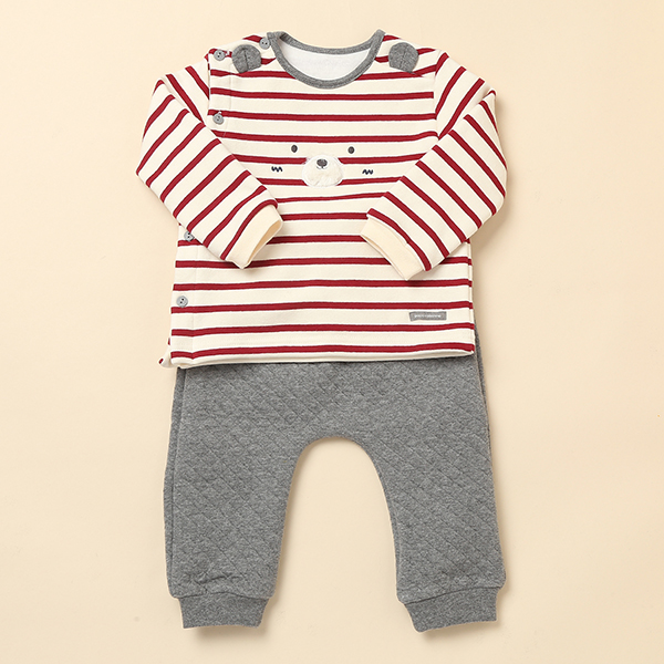 1.깜찍하고 귀여운 스타일로, 편안하게 입을 수 있는 티셔츠와 바지세트입니다.