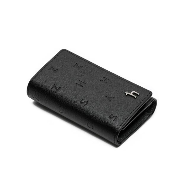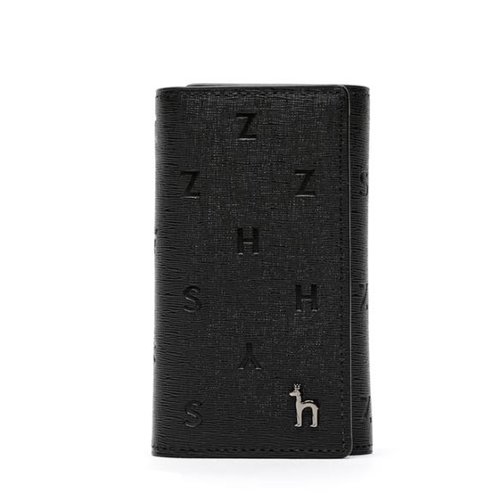 블랙 컬러 로고 패턴 바탕에 베이직한 디자인과 하단 퍼피로고로 포인트를 준 반지갑형 키홀더 입니다