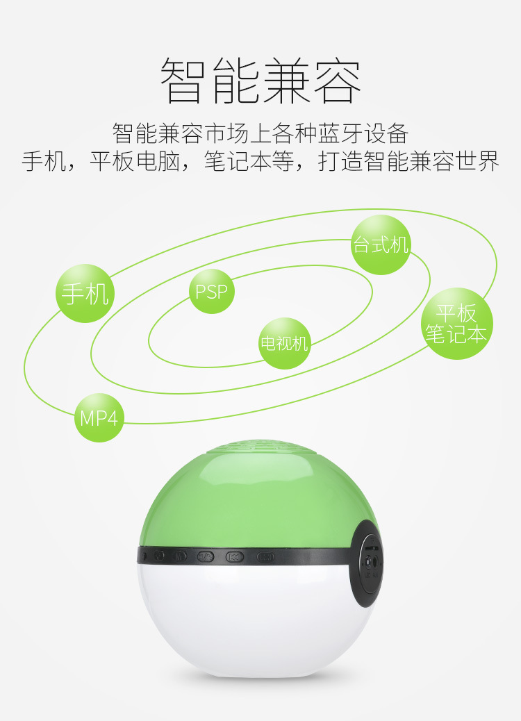 Wireless Bluetooth connection, aux wired connection, TF card play