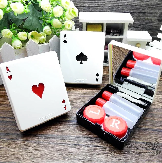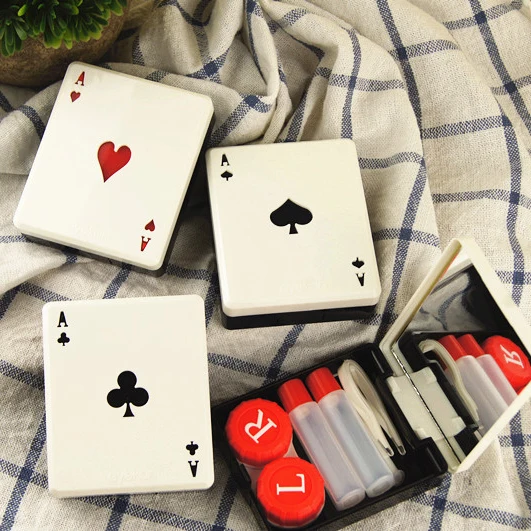 포커 모델링 포켓 미니 콘택트 렌즈 케이스 여행 키트 쉽게 캐리 거울 컨테이너 렌즈 안경 상자 눈 케어 키트 D222