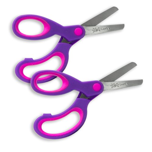 [Product Information]- Two pairs of colorful Lefty's custom left-handed blunt scissors for left-handed kids, five years old and up. 5-1/2" long with 2" blades.