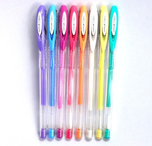 -. Feature : Ink color: White, Yellow, Orange, Green, Violet, Pink, Red, Blue (Total 8 colors) / It is a bargain set. It is eight pens in 1 pack. / Uni ball gel ink pen / great for writing on dark coloured paper / Super-smooth, waterproof and fadeproof opaque pigment ink.