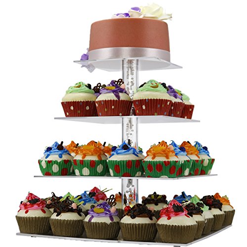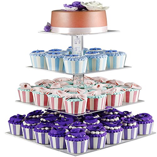 Product Description 2018 New Style Unique Bubble Rod Cake Cupcake Stand Tower Display Holder (only in our store),It will make you, your family and friends happy and impressed. Specifications - 4 Tier Cupcake Stand Display Tower - DYCacrlic Item Type: The center supporting BUBBLE ROD is small bubble inside and solid Color: Clear (more color you can find from our store DYCacrlic) Material: Food Grade Premium Acrylic Package: 4 plates, 3 BUBBLE ROD, 4 pieces 3M rubber feet plus gift boxSize - 1st Tier: 6inch/15cm - Fits Cupcake 3" in Diameter: 6 pcs - 2st Tier: 8inch/20cm - Fits Cupcake 3" in Diameter:8 pcs- 3st Tier: 10inch/25cm - Fits Cupcake 3" in Diameter : 10 pcs - 4st Tier: 12inch/30cm - Fits Cupcake 3" in Diameter: 16 pcs Usage: Cupcake Stands, Desser Stand, Party Cake Stand, Party Treat Stand, Appetizer Stand, Halloween Treats Stand,Thanksgiving Treats Stand, Christmas Treats Holder, Wedding Cakes Stand etc Features: Made of Non-toxic, Crystal Clear Acrylic. Easy to wash,versitile use. Easy to disassemble for storage. Each plate comes with a protective film to minimize scratching during shipping Our advantage: directly from factory with good price and quality controlWe pride ourselves with superior customer service, oversee / closely control the quality,and develop new design We are confident your family and guests will love our DYCacrlic cupcake serving and display stand. Other Cupcake Cake Stand Choice: 3, 4, 5 Tiers, Round and Square Shape, Clear, Yellow, Pink, Blue, White, etc, Bubble Rod Pillars etc, You can go to our store (DYCacrlic) to find.Just put into the store name DYCacrlic in search box. 0