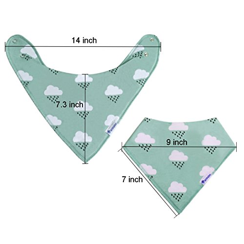 3 Size Adjustable Bandana Bibs Fit for 3-24 month -- 2 sets of nickel-free metal snaps allows you to adjust the neckline size of the bibs to let it be a perfect fit for your baby whether he/she is a 3-month-old infant or a 2-year-old toddler.