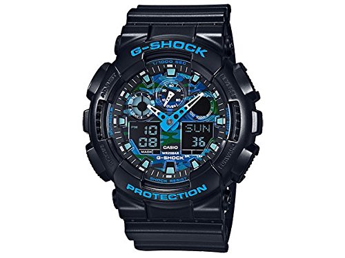 -. Feature : G-SHOCK GA100シリーズ アナデジコンビモデル / (H×W×D)約47×50×14/重さ70g腕周り最大約20cm / ステンレス、樹脂 / 専用ケース、保証書、取扱説明書 保証期間(1年間) / ● 耐衝撃構造(ショックレジスト)● 耐磁時計(JIS1種) ● 20気圧防水 ● ワールドタイム:世界48都市(29タイムゾーン、サマータイム設定機能付き)+UTC(協定世界時)の時刻表示、ホームタイムの都市入替機能 ● ストップウオッチ(1/1000秒、100時間計、速度計測機能(MAX1998unit / h、2unit / h単位)、ラップ/スプリット計測切替) ● タイマー(セット単位:1分、最大セット:24時間、1秒単位で計測、オートリピート) ● 時刻アラーム5本(1本のみスヌーズ機能付き)・時報 ● フルオートカレンダー ● 12/24時間制表示切替 ● LEDライト(オートライト機能、残照機能、残照時間切替(1.5秒/3秒)付き) ● 月差:±15秒以内