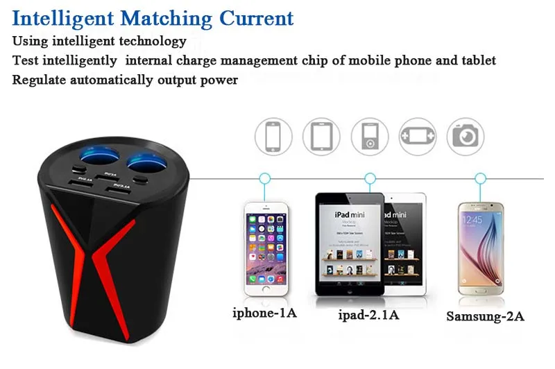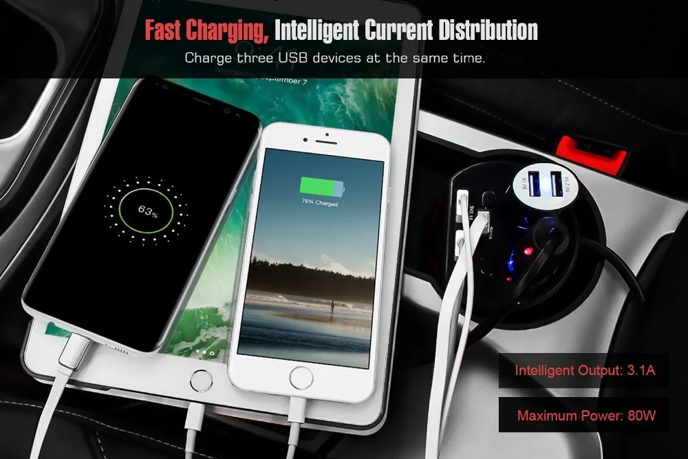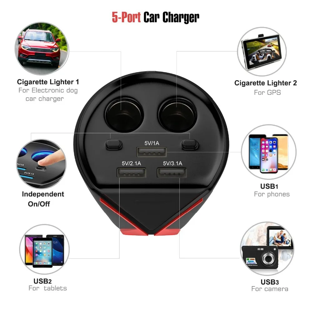 Output Interface:Two Cigarette Lighter and Three USB Ports