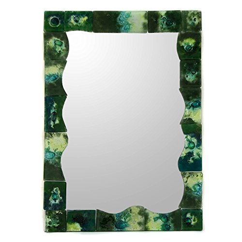 NOVICA Murano Wood and Glass Wall Mounted Mirror, Green 'Lush'