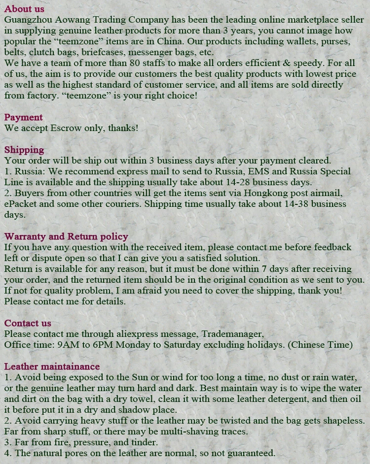 Main Material:Genuine Leather
