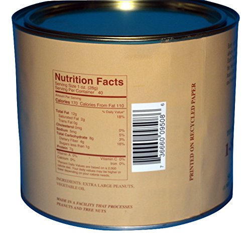 Cooked to perfection in small batches, and are Unsalted. These super extra large gourmet virginia peanuts are the best tasting & most nutricious peanuts grown. This vacuum sealed tin holds 40 ounces..