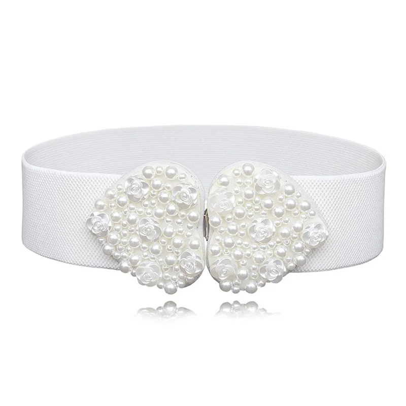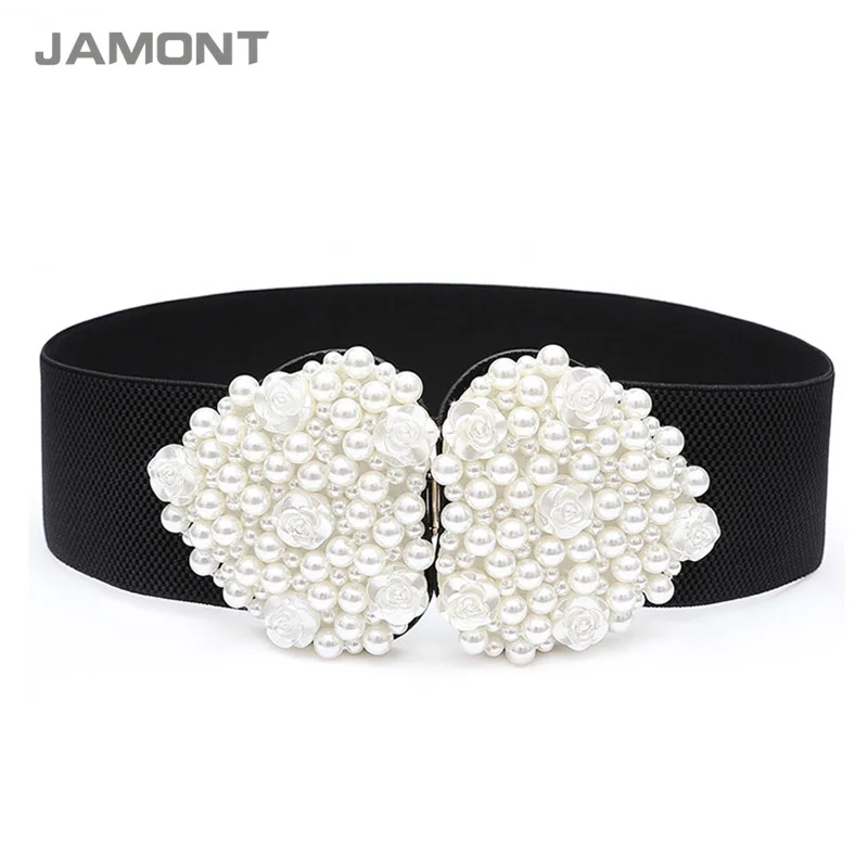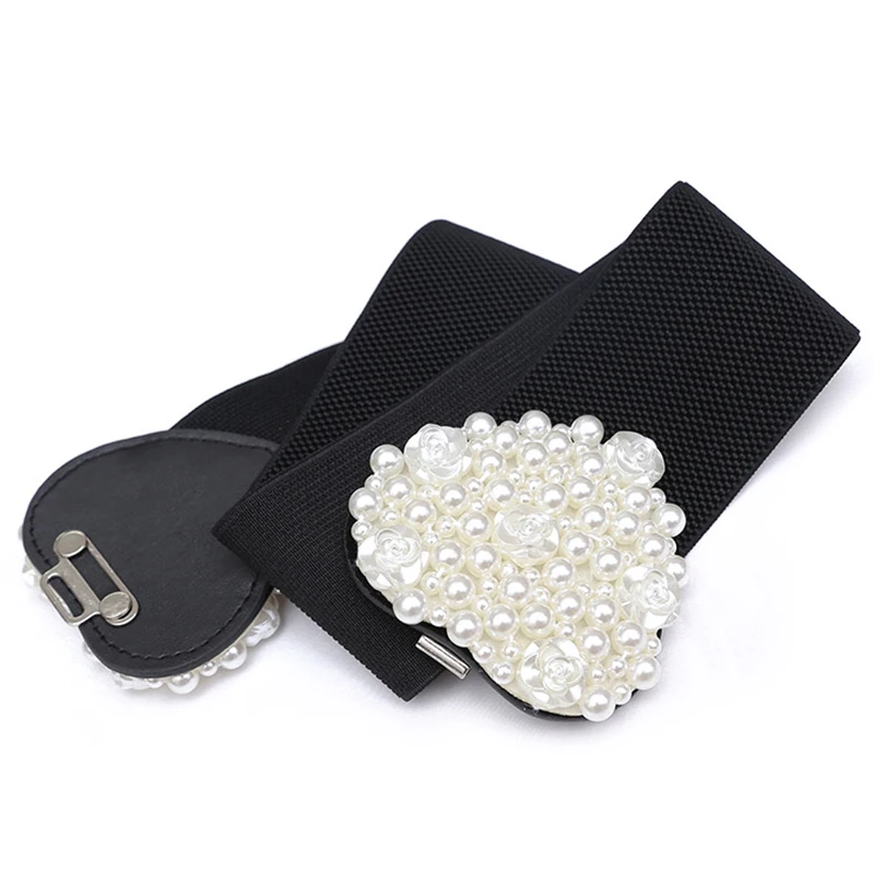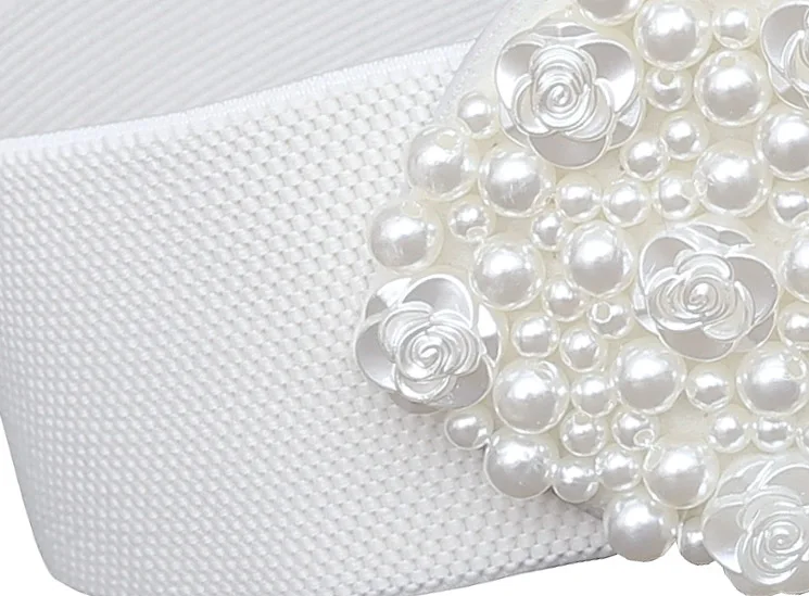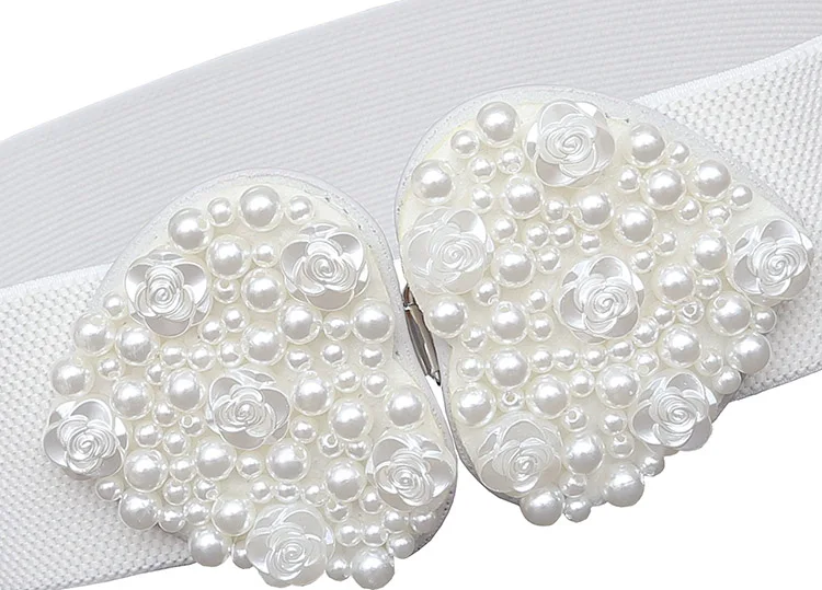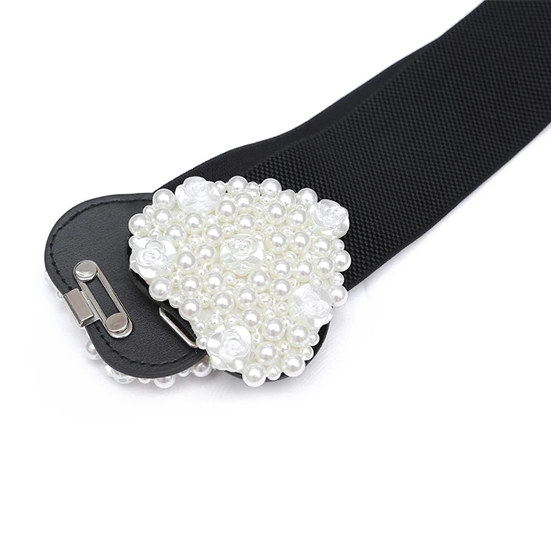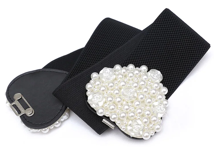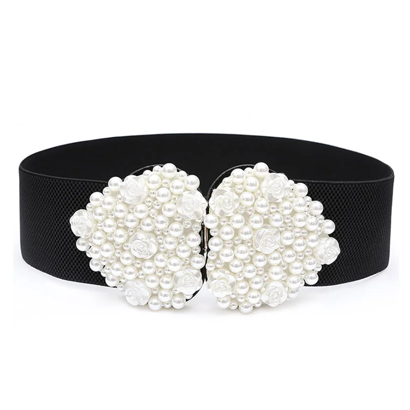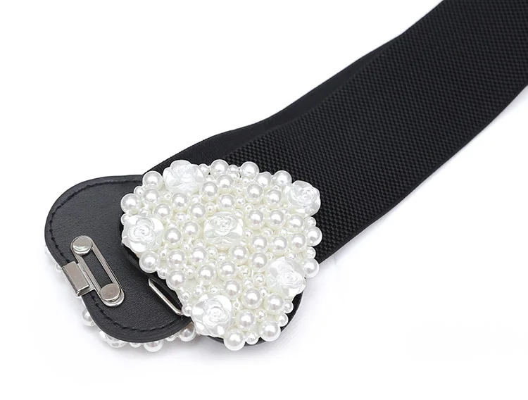 Name:2018 New Pearl Elastic Stretch Buckle Wide Waistband Ladies Waist Belt