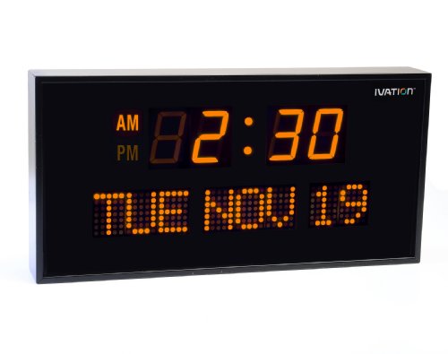 Large and wide, the clock has a beautiful, bright display that shows the time clearly with AM and PM indicator that shines. The calendar in the lower part is showing day of the day of the week and the date.If you have an aging parent, especially one with low vision or who has a memory issue, they will find this product very useful. All the information they need, displayed clearly to them with big letters. They will be thank you for this gift.