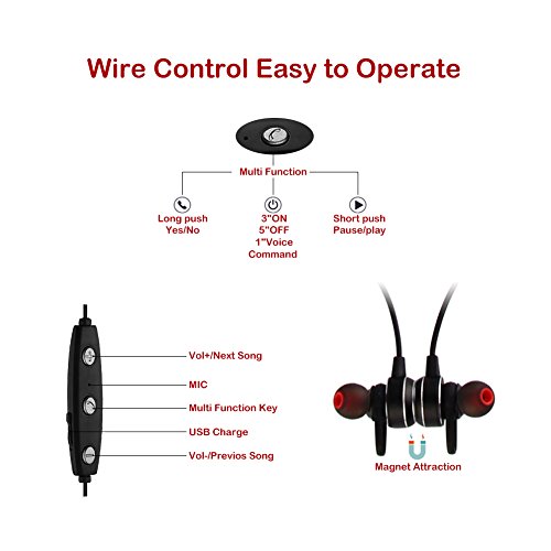 Slim Wireless Bluetooth Headphones, Bluetooth 4.1 Lightweight Stereo Earbuds with Magnetic Connection, Sweatproof Earbuds for Gym Running Workout, 7 Hour Battery Noise Cancelling Headsets Built-in Mic