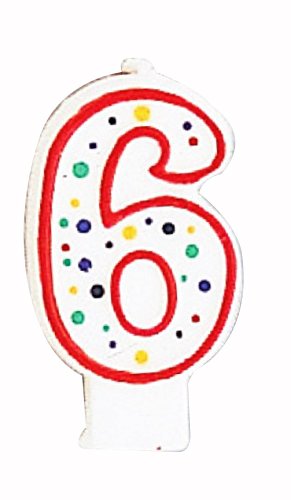 Creative Converting CANDLE-4565 Polka Dot 6 Numeral Candle, 3-Inch x 1.5-Inch