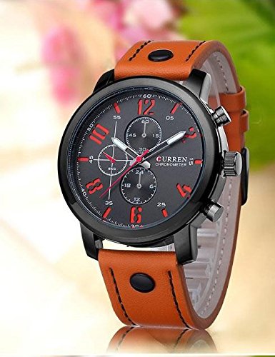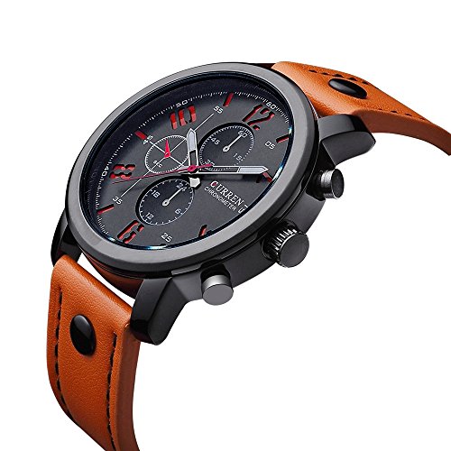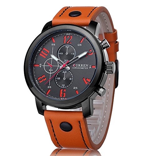 -. Title : Curren Men's Outdoor Sport Military Round Dial Leather Band Seconds Quartz Wrist Watch Orange