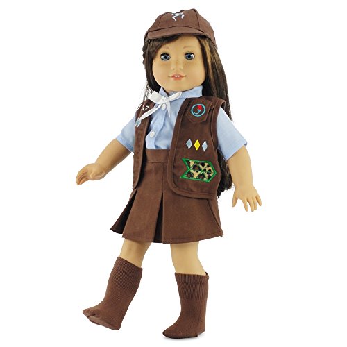 -. Feature : Made to fit 18 Inch dolls such as American Girl, Madame Alexander, Our Generation, etc. / Luxurious high quality fabrics, machine washable, safety tested. / Includes vest with embroidered patches, blue shirt with white bow, brown socks and a brown hat. / Great value for a six piece outfit! Gift-Boxed! Packaged in classy pink gift box. / Designed and manufactured by Emily RoseTM Top quality doll manufacturer. We are not affiliated with American Girl®, Reg. Trademark of American Girl, LLC.