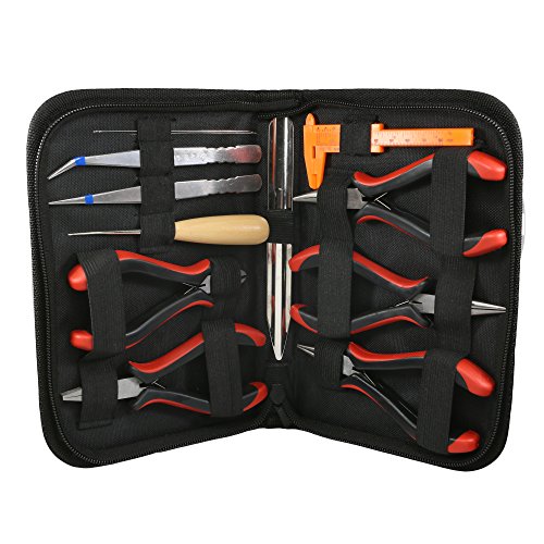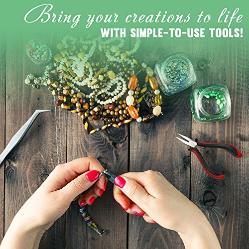 - ✅ EVERYTHING YOU NEED IN ONE DELUXE KIT! We promise to deliver over-the-top value with your purchase of our premium Jewelry Crafting Kit. Our set includes these 11 full size tools and a premium zippered storage case: Round Nose pliers, Flat Nose Pliers, Chain Nose Pliers, Cute Nose Pliers, Flat Bent Nose Pliers, Awl, Bead Scoop, Caliper, Straight Tweezer, Bent Nose Tweezer, and Two Needles.