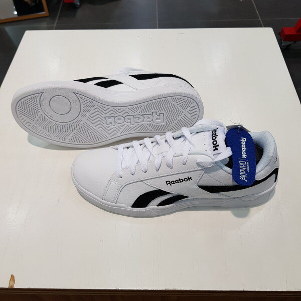 리복 남여공용 로얄 컴플리트입니다 화이트 컬러 바탕에 블랙 포인트를 넣어 보다 깔끔하고 심플한 디자인이 특징입니다발볼이 없으면 한치수 작게 주문하세요.