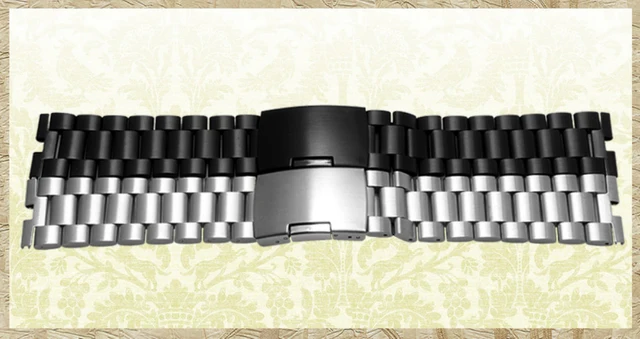 소용수 szie: 22mm 제공되는 색상: 실버와 블랙 wid일: 22mm( 버클 폭: 22mm) 밴드 길이: 17.5cm 재료: 스테인레스 스틸 색상: 실버 thinkness: 3.5mm-4mm 대한mm 버클: 스테인레스 스틸 버클이 구멍: 예 유형: 패션 패턴: 더 로고: 더 사용자 정의: 지원 customsize cprint 주문 로고. 패턴. 크기. 등 패키지:1pcs*watch 스트랩, 1pcs*loading 스트랩 도구와 3pcs*hand 귀( 핀)