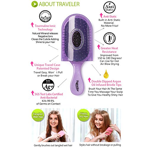 NuWay 4Hair - Traveler - Dual-Patented easily detangles all types of hair! exclusive travel-case, is the perfect size for your purse and travel! (Purple)