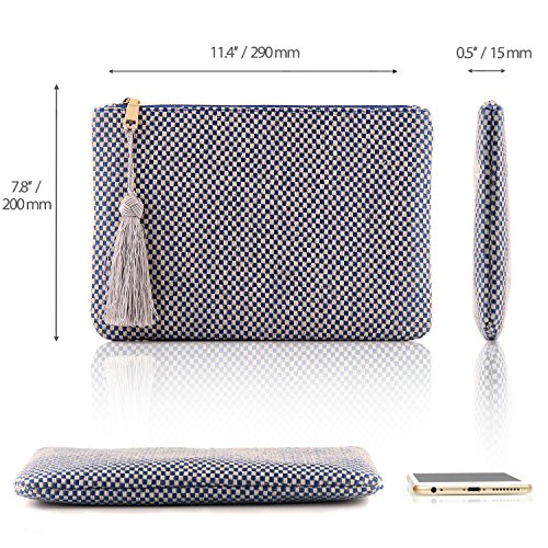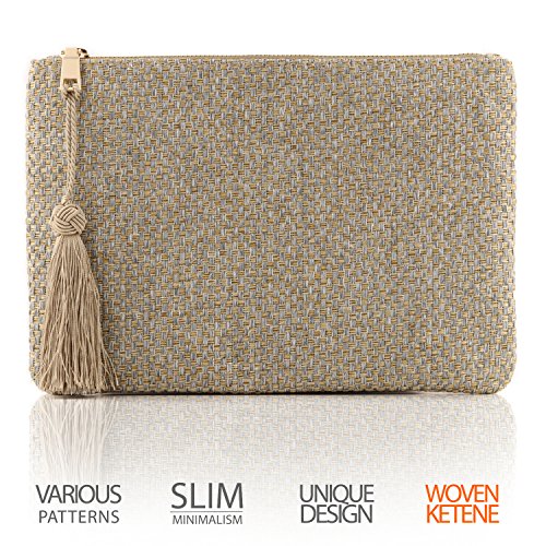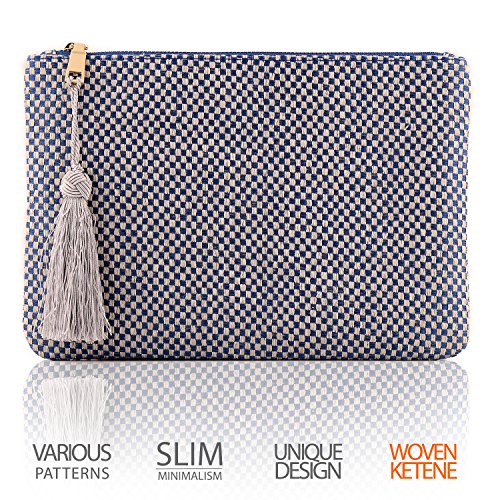 -. Feature : Modern Knit Design - A designer women's clutch, these beautiful woven ketene purses are the perfect on-the-go size for busy ladies balancing work, home and life. / Slim, Convenient Pocket - This small clutch is sized to hold important essentials like credit or debit cards, money, coins or feminine necessities. / A Touch of Class - Each woven ketene clutch also features a trendy fringe tassel that hangs down from the siding, giving it just a bit of flair to show off your sassy side. / Secure, Zippered Closure - Fitted with a small, yet heavy-duty zipper, you can keep essentials tucked away safely even when you're on the move.