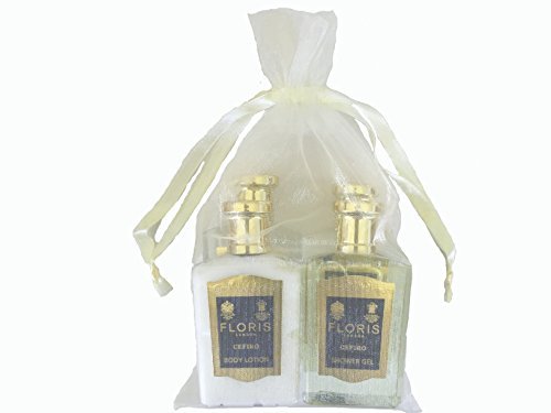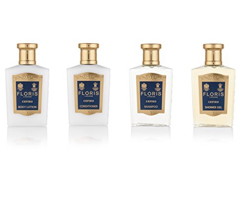 Floris London Cefiro Travel & Gift set of: Shampoo (50mL), Conditioner (50mL), Body Lotion (50mL) and Shower Gel (50mL) in organza gift bag. From the Spanish word "zephyr", meaning a gentle breeze, Cefiro is a fragrance perfectly suited for men and women, with crisp lemon and lime, punctuated with bergamot and mandarin, warmed by spicy notes of cardamom and nutmeg on a fresh floral jasmine heart that leads to a clean, musky, woody base. Imported from England. A great travel set of gift! Limited Quantities.Feature