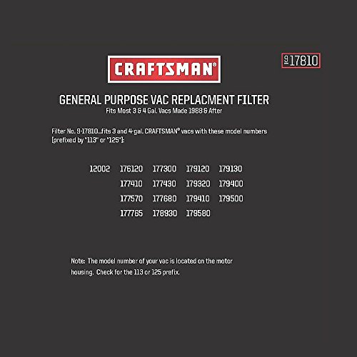 -. Title : Craftsman General Purpose Vac Filter, 3 to 4 Gallons No. 917810