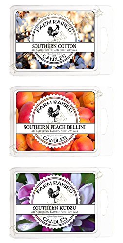 3 Pack Southern Clean Breeze Collection. Scented Wax Cubes Melts. 100% All Natural Soy Wax, Organic-Vegan Wax Melts Mix. Like Scentsy Bars. Southern Cotton, Peach Bellini, Kudzu Candle.