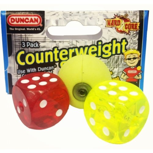 Studio : Duncan Publisher : Duncan Binding : Toy Product Description Ready to learn a new style of play?! A counterweight is a dice or ball attached to your yo-yo string so you can "let go" completely and perform new tricks never before possible. Now available in a three pack with a translucent red dice, translucent yellow dice, and yellowish-green rubber ball! 0