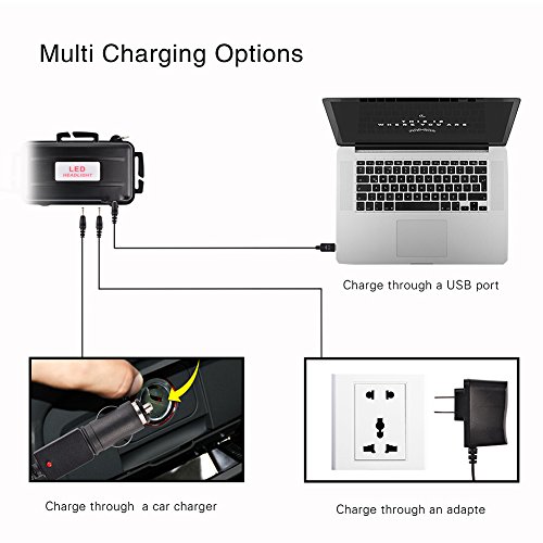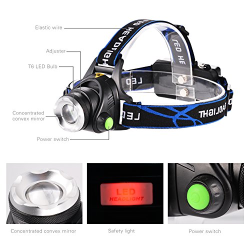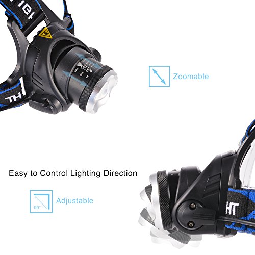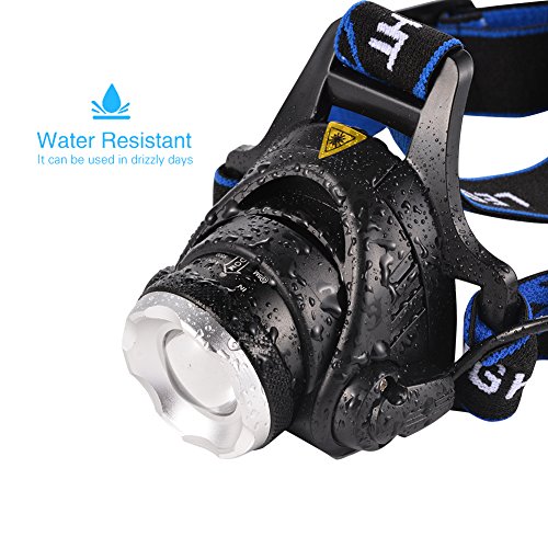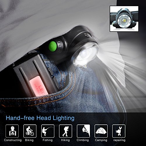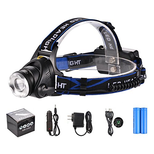 3 modes Waterproof LED Headlamp with Telescopic focusing 1800 Lumens light with Rechargeable Batteries Wall Charger Car Charger and USB Cable Included