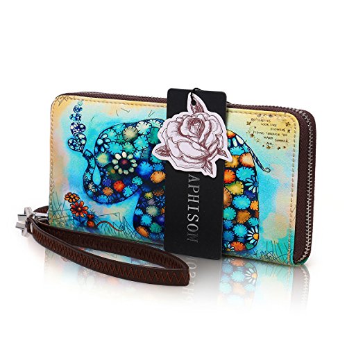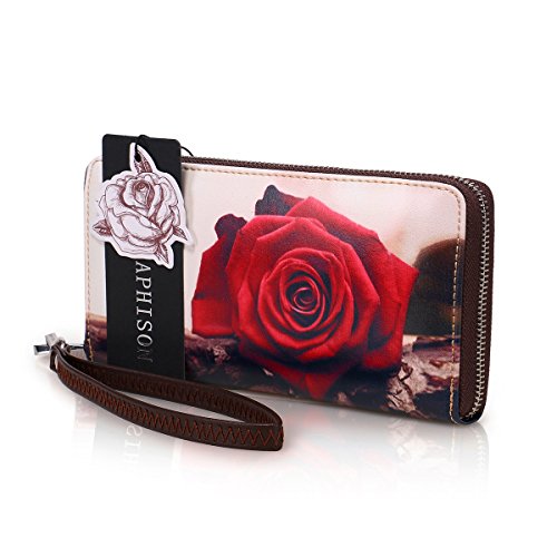 -. Title : APHISON Designer Women's Leather Zipper Wallets Cowhide Painting Card Clutch Holder Purse
