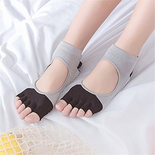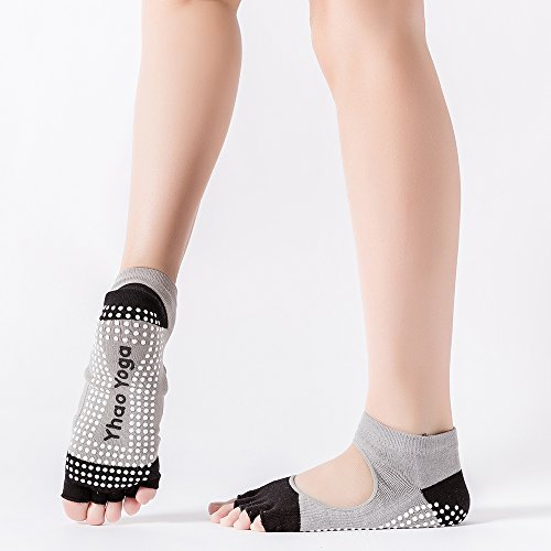 -. Feature : Comfort: Non-skid, all-grip, no-slip socks,elastic material with high thread knitting technique comfortably stretches over foot for yoga, barre, pilates and workout. Towel like bottom provides comfort for sports. / Design: Five toe construction allows toes to move and spread naturally. Fitted heel eliminates bunching and twisting. Arch band provides gentle pressure to lift and support. Open foot design feels barely there. / Non-slip grip: Non slip dots on the bottom of the socks contribute to shock absorption and cushioning. Provides stability and balance to have better control of your body movements and avoid injuries. Natural cotton absorbs sweat keeps your feet dry and healthy. Provide a barrier between your foot and the floor or mat. Helps to protecting your feet from unwanted dirt and germs. / Multi-role: Yoga socks non slip fit (Women's Shoe Size 5 -9 and Men's Shoe Size 4-8). Suitable for working as yoga socks, barre socks, pilates socks, ballet barre socks, dance socks, fitness exercise socks, yoga shoes. Provide you with a comfortable experience on any occasion. / Guaranteed:If there is anything you don't like about these socks, size, color, quality etc, Please do not hesitate to contact us in the first time.We will do our very best to meet your request and solve your problem quickly and efficiently!
