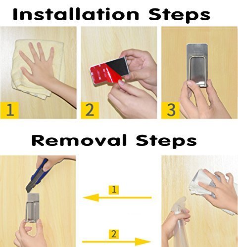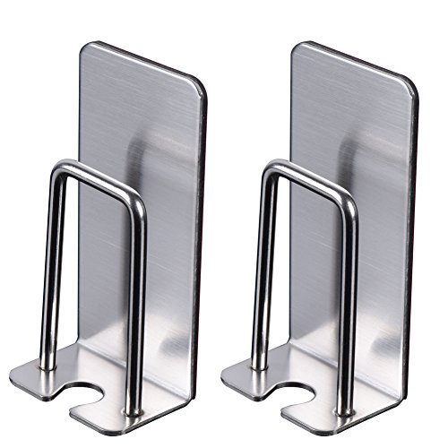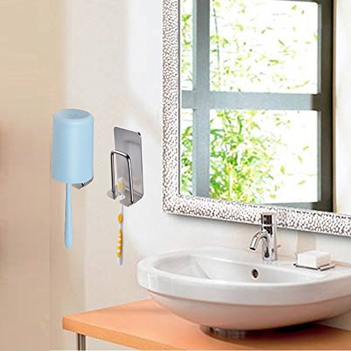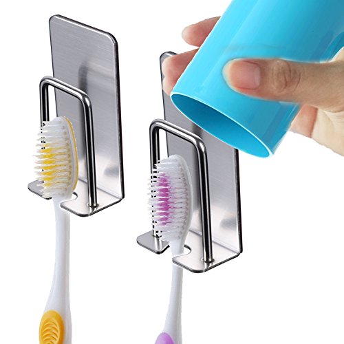 Toothbrush Holder Wall Mount - No Drill or Nail Needed Powerful Adhesive Cup Hook (2Pack,Stainless Steel)